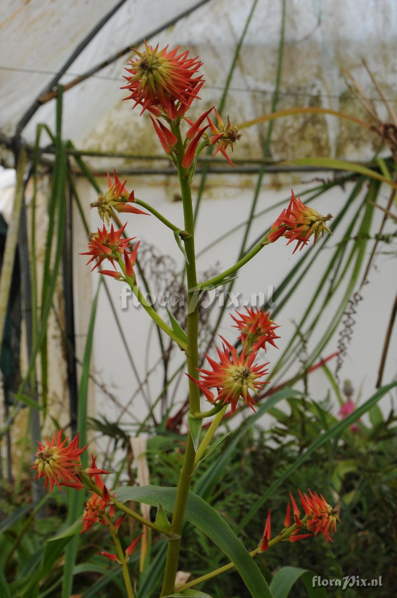 (Uploaded as: Pitcairnia sp. (lehmannii?)) Locality: Large Pitcairnia species from collector in Queensland. Origin unknown but probably grown from imported seed. About 1.5m or so tall. Somewhat rhizomatous - 30cm, with dense, recurved spines on the edges of the elongating sheaths which are very dark at the base (30cm+) (merge into narrowed, channelled leaves. until blade starts then entire). Could it be Pit. lehmannii? Photographer: Peter Tristram Identification: solved