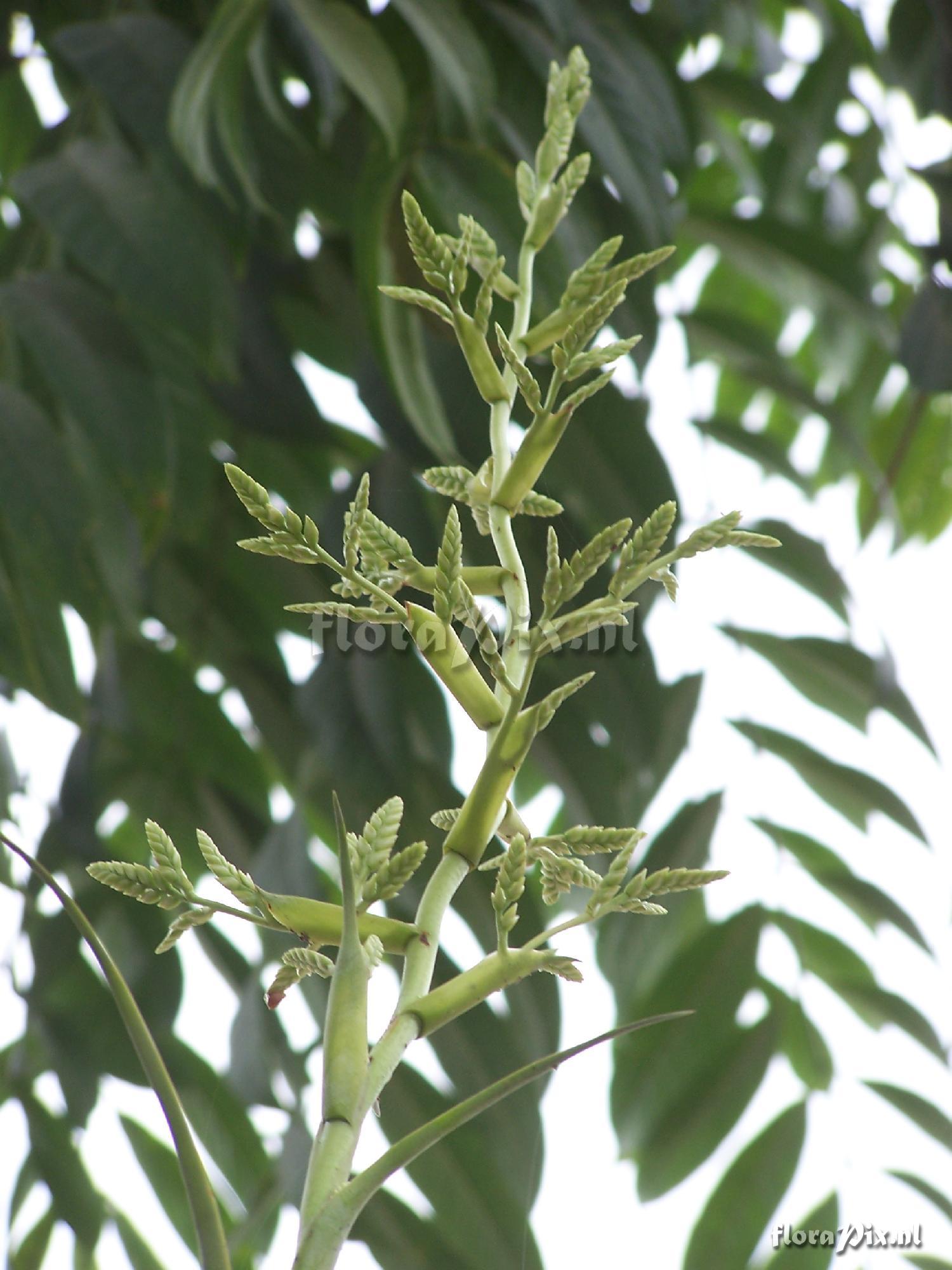 (Uploaded as: Racinaea sp.) Locality: Ecuador - Zamora-Chinchipe - Growing in the city of Zamora, 930m Photographer: Manfred Zingler Note: About 6 years I am observing this bromeliad. First I thought it was a grey Vriesea or Tillandsia, but now...Including their inflorescence this plant is nearly 60cm tall. It is not one of the three well known varieties of R. multiflora. Identification: pending