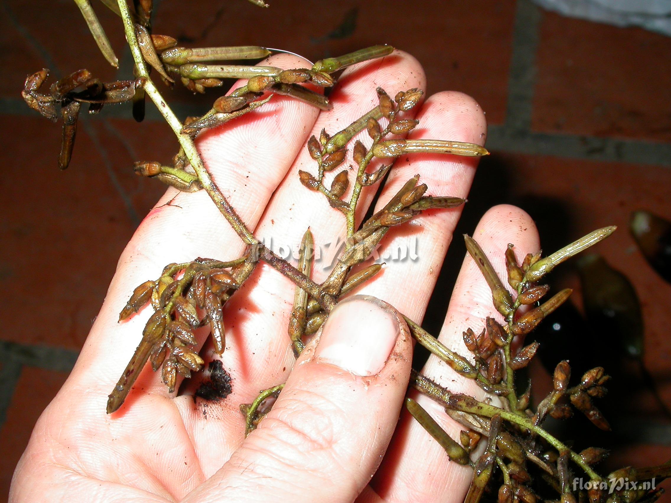 Locality: Ecuador - Zamora-Chinchipe Province; few km east of Pass (""El Tiro"") between Loja and Zamora; very open, windswept and stunted ridge forest. Photographer: Florian Werner Note: Col.: Werner, F.A. 2216 (27-04-2007) - Det.: H. Luther (SEL) 2008 "growing upright; leaf tips touch infl. (i.e., conical gestalt). Ja genau, alles Gute zum Geburtstag!"
