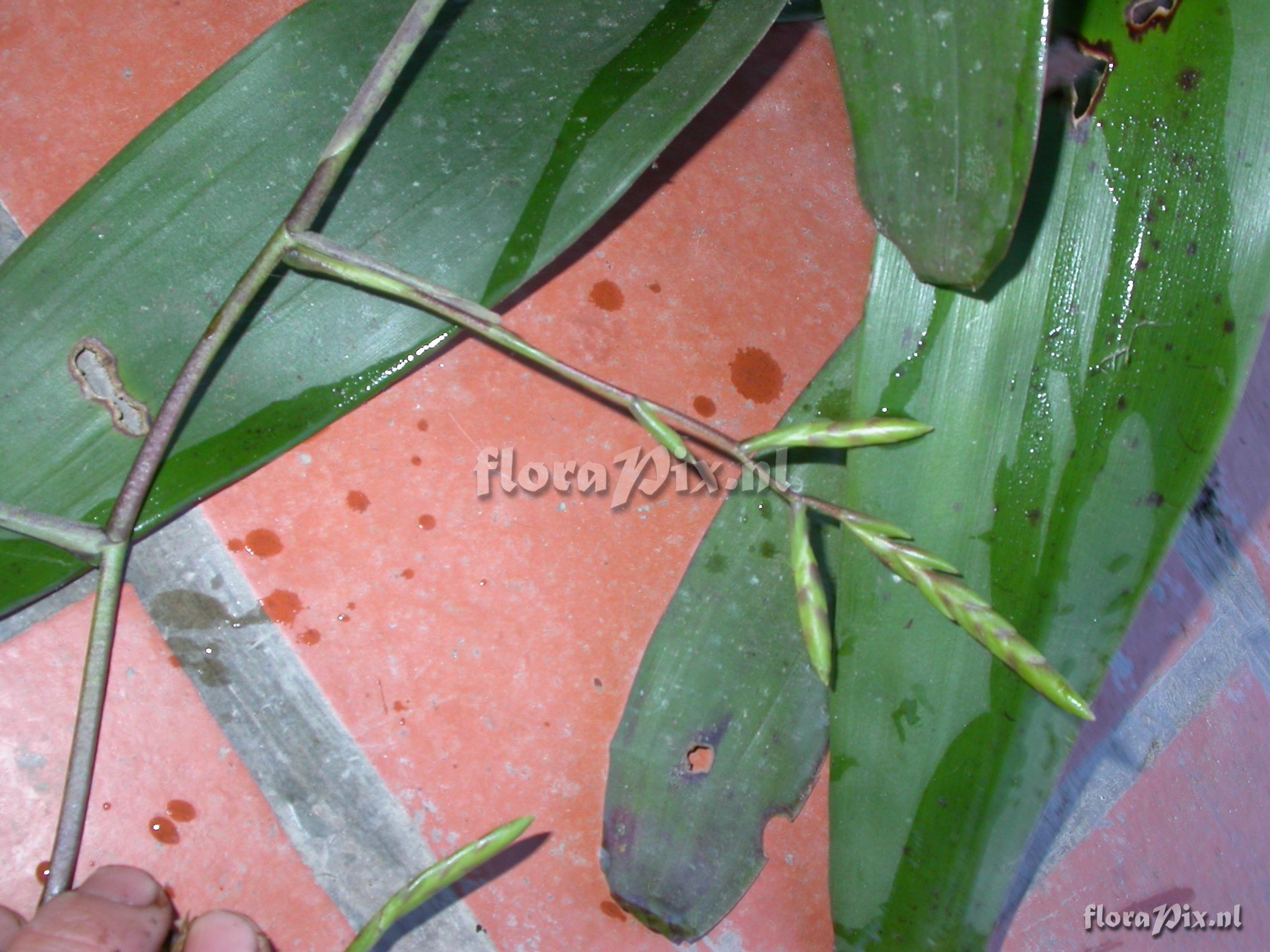 Locality: Ecuador - Arco Iris; entrance to Podocarpus NP or road Loja - Zamora; trail towards river; montane moist forest. Photographer: Florian Werner Note: Col.: Werner, F.A. 2236 (06-05-2007) - Det.: H. Luther (SEL) 2008 "leaves resembling R. monticola in coloration but tank lower, more open, of fewer and longer leaves (with massive (thick) base; infl. semi-pendant, ca. 1m long; rare species. Luther: R. tenuispica (Andre) M.A.Spencer & L.B.Sm.; Till (2011): spiculosa var. spiculosa (Griseb.) M.A. Spencer & L.B. Sm."