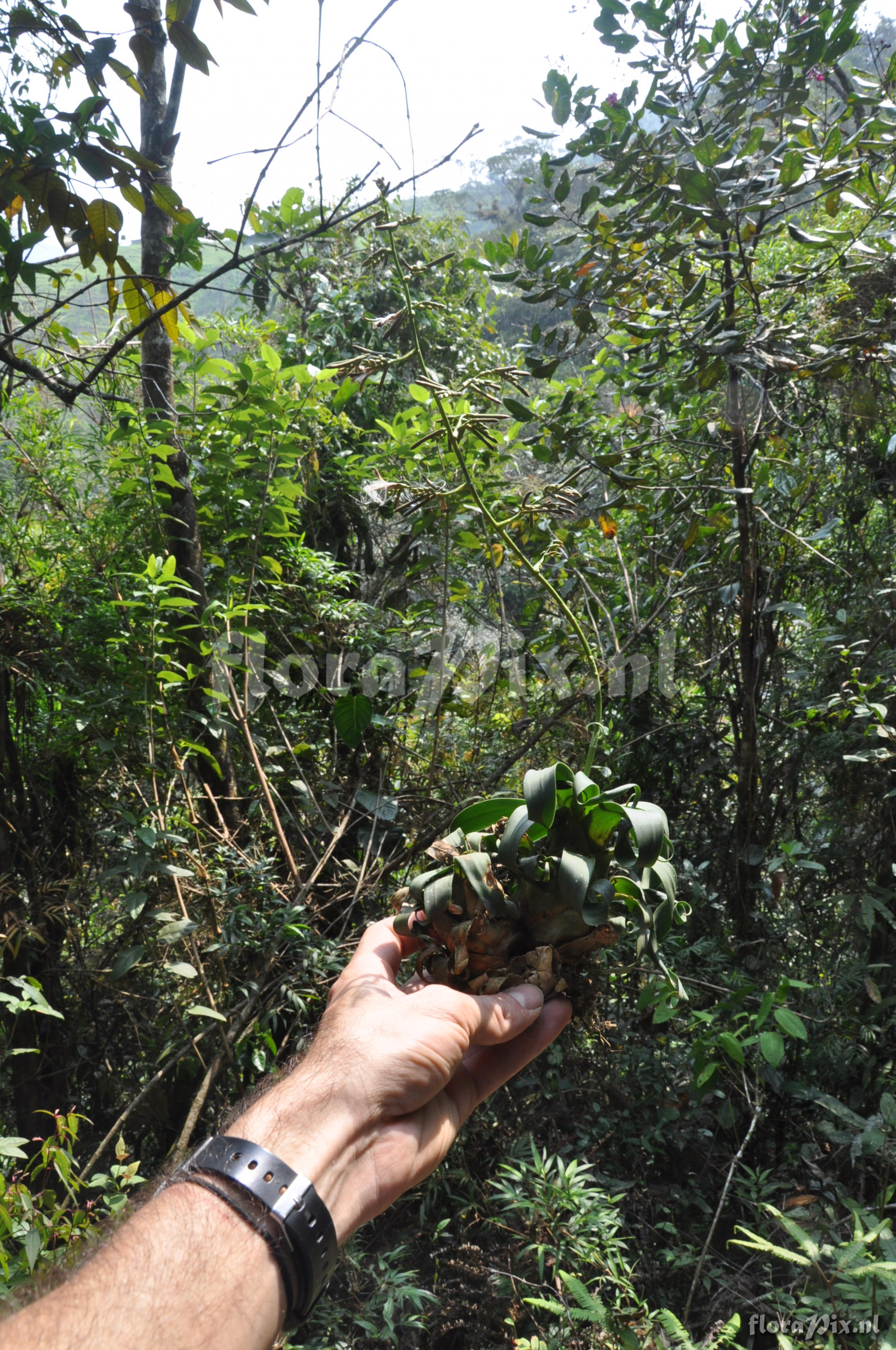 Locality: Ecuador - Prov. of Zamora-Chinchipe, area of Estación Cientifica San Francisco (S 03°58´, W 79°04´ ), road Loja-Zamora, ca. 35 km from Loja; moist montane forest Photographer: Florian Werner Note: Col.: Werner, F.A. 3074 (11-09-2010) - Det.: W. Till (U Vienna) 2011 "in secondary scrub; one single specimen; never seen in the valley before. Leaves soft, succulent, of spotless opaque green (dark red pigmentation only on inner side of leaf base), and terminally curled by 720° if not much more."
