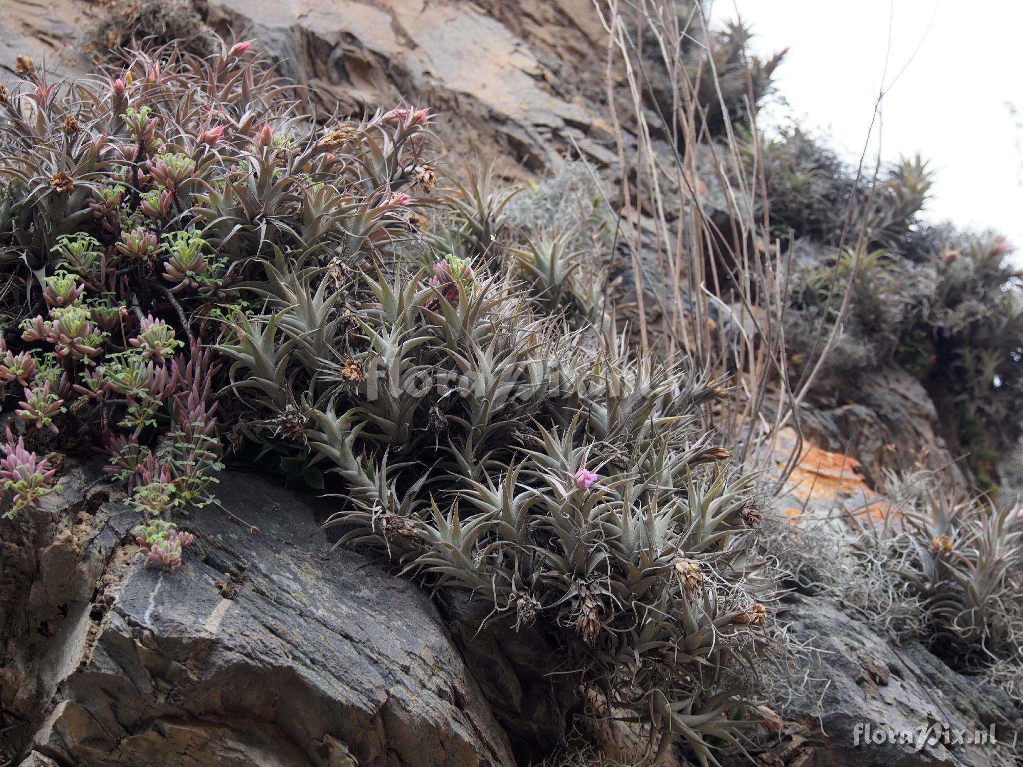 (Uploaded as: Tillandsia sp.) Locality: Peru - Urubamba - Found growing on rock cliffs at Ollantaytambo, province Urubamba, Peru at an elevation of 2800 m. Should have been easy to identify, but I could not find it. Photographer: Jerry Raack Identification: solved