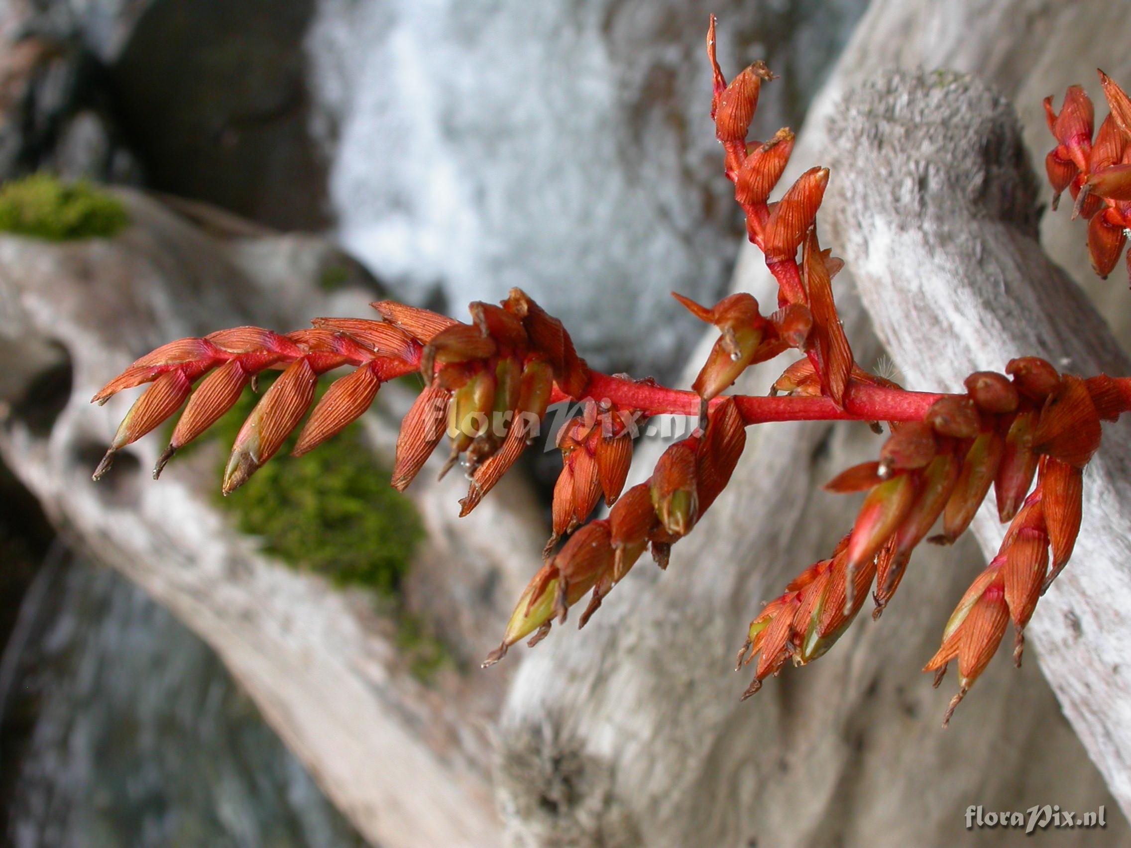 Locality: Ecuador - Arco Iris; entrance to Podocarpus NP or road Loja - Zamora; trail towards river; montane moist forest. Photographer: Florian Werner Note: Col.: Werner, F.A. 2648 (04-10-2008) - Det.: W. Till (U Vienna) 2011 "leaves quite soft, with tip peculiarly bent up- and inward; entire (fruiting) infl. (ca. 1.2m long and erect) brick-red. Rare."