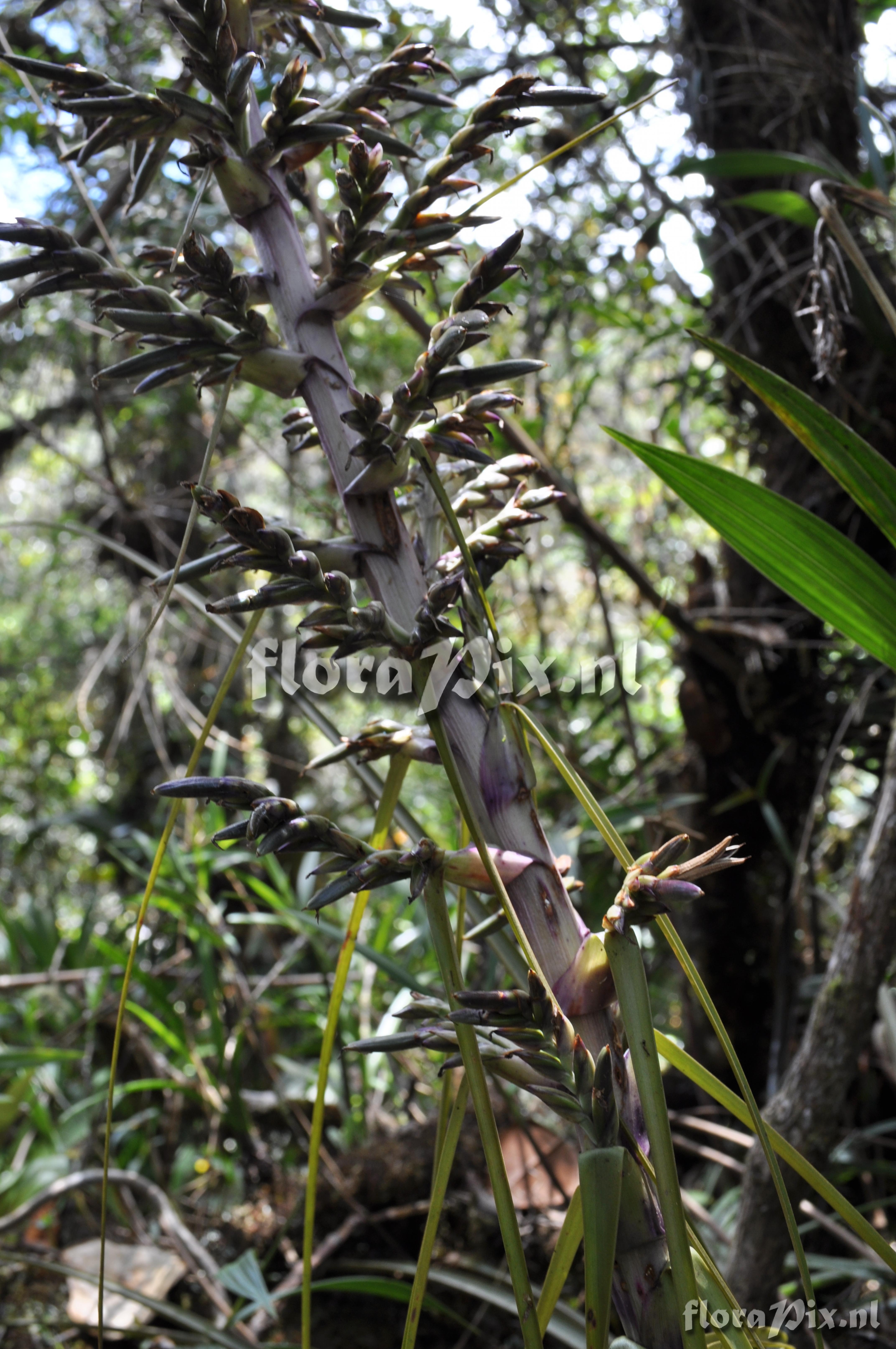 Locality: Ecuador - Prov. of Zamora-Chinchipe, area of Estación Cientifica San Francisco (S 03°58´, W 79°04´ ), road Loja-Zamora, ca. 35 km from Loja; moist montane forest Photographer: Florian Werner Note: (as Werner, F.A. 3112 ) "inf. semipendent, bracts magenta, corolla dark lila; plant growing terrestrially but usual an epiphyte, more common at 2200-2300 m, but also in ridge situations."