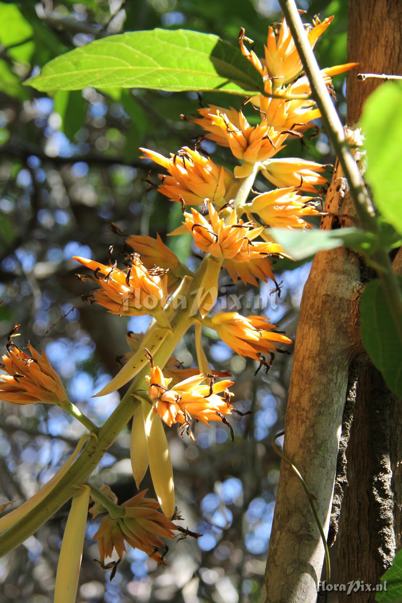 - Thinking twice ... looks like a yellow-bracted A. x lanjouwii. Known from Suriname only so far. Flower details have to be laid side by side. - Identification (10955): Guillermo Rivera (2013-05-01) =Aechmea aquilega
