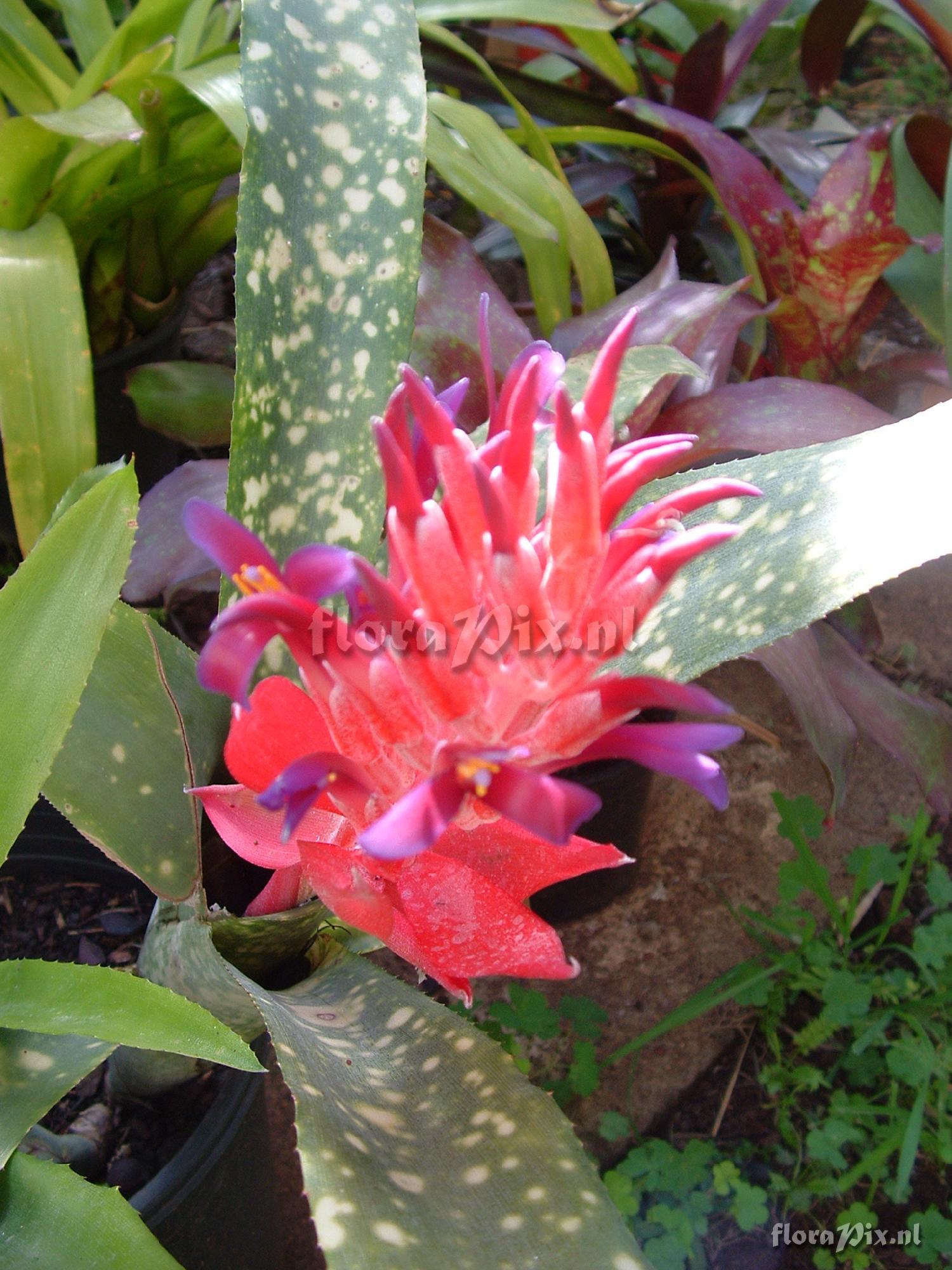385 - Bromeliads (Garden) - 2007-03-01(Dimension: 1530 x 2050 pixels - Counter: 21548) Billbergia Pyramidalis/chlorostricta "Fantasia" ![]() Photographer: Richard Martin Note: Lovely white spotted leaves, though it seem to takes ages for the pups to spot up! A really luminescent bloom.