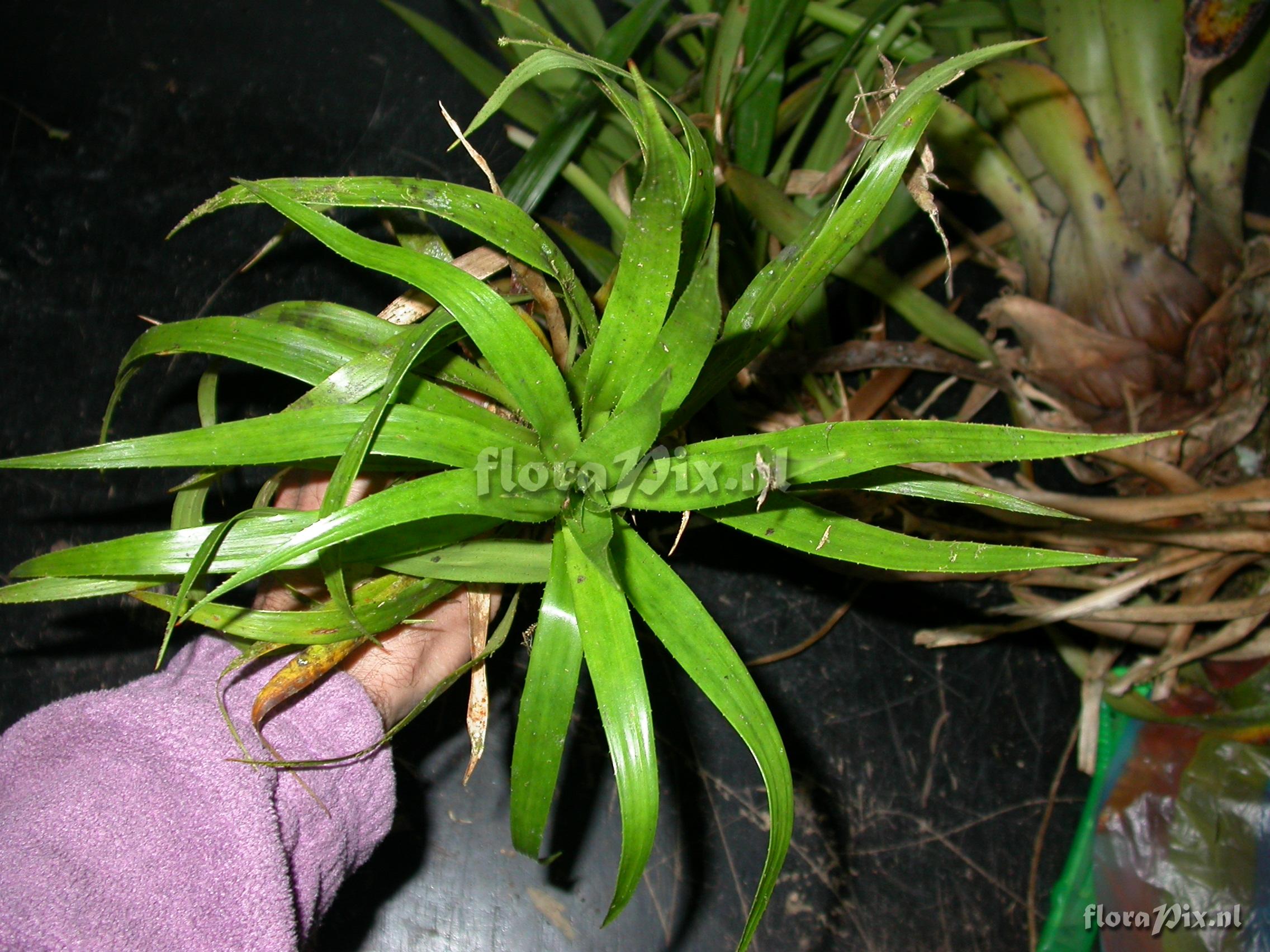 7996 - Bromeliads (Wild) - 2011-10-13(Dimension: 2302 x 1754 pixels - Counter: 8028) Greigia ![]() Locality: Ecuador - Zamora-Chinchipe Province; few km east of Pass (""El Tiro"") between Loja and Zamora; moist lower slope forest Photographer: Florian Werner Note: Col.: Werner, F.A. 2136 (09-12-2006) "leaves 25-30cm long, base chestnut-brown on both sides, shoot ca. 1cm diameter; considerably smaller than any other local Greigia; single leaves from mat. plant."
