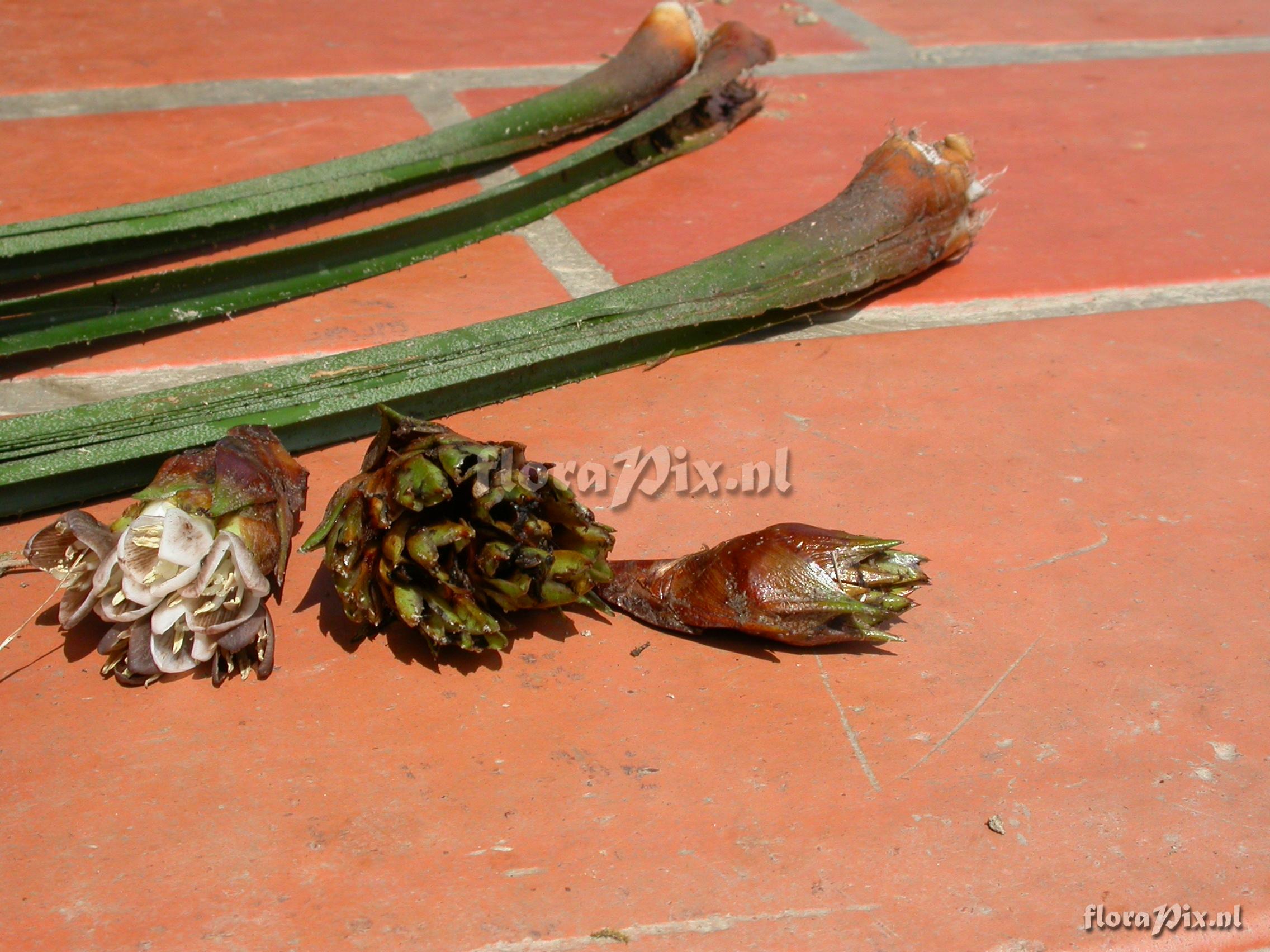 8340 - Bromeliads (Wild) - 2011-10-13(Dimension: 2302 x 1754 pixels - Counter: 8031) Greigia ![]() Locality: Ecuador - Prov. of Zamora-Chinchipe, area of Estación Cientifica San Francisco (S 03°58“, W 79°04“ ), road Loja-Zamora, ca. 35 km from Loja; moist montane forest Photographer: Florian Werner Note: Col.: Werner, F.A. 2175 (16-01-2007) "petals blunt, apparently white when mature, but turning grey with age. Only Greigia at these low altitudes; characteristically dense scaling abaxially on leaves."