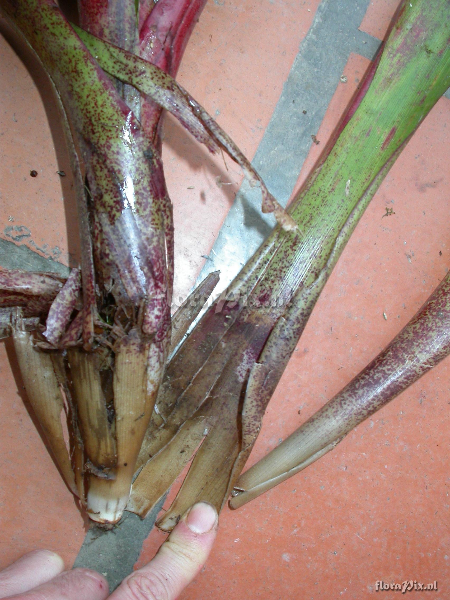 8337 - Bromeliads (Wild) - 2011-10-13(Dimension: 1734 x 2322 pixels - Counter: 10102) Guzmania kareniae ![]() (Uploaded as: Guzmania aff. sanguinea 2 ) Locality: Ecuador - Prov. of Zamora-Chinchipe, area of Estación Cientifica San Francisco (S 03°58“, W 79°04“ ), road Loja-Zamora, ca. 35 km from Loja; moist montane forest Photographer: Florian Werner Note: (as Werner, F.A. 1959 ) very much like G. sanguinea (fw1787) which grows at lower altitude and has yellow bract centers while THIS has red bract centers along with the yellow flowers. This species also has prominent fine red spotting on basal ca. third of leaves. Identification: Solved