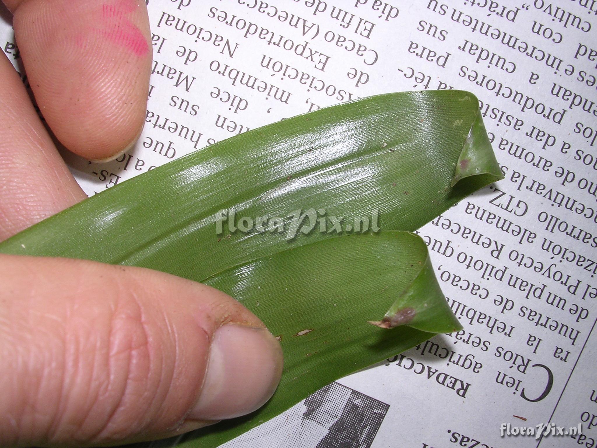 8641 - Bromeliads (Wild) - 2011-10-13(Dimension: 2078 x 1586 pixels - Counter: 8347) Guzmania rot ![]() Locality: Ecuador - Prov. of Zamora-Chinchipe, area of Estación Cientifica San Francisco (S 03°58“, W 79°04“ ), road Loja-Zamora, ca. 35 km from Loja; moist montane forest Photographer: Florian Werner Note: Col.: Werner, F.A. 1217 (20-10-2004) - Det.: F.A. Werner Tips curled downward