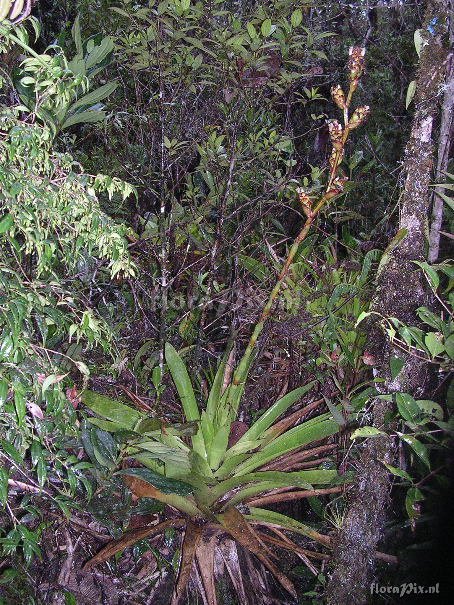 8869 - Bromeliads (Wild) - 2011-10-13(Dimension: 1566 x 2098 pixels - Counter: 10533) Guzmania killipiana ![]() (Uploaded as: Guzmania aff. cuzcoensis (sp. nov.) ) Locality: Ecuador - Prov. of Zamora-Chinchipe, area of Estación Cientifica San Francisco (S 03°58“, W 79°04“ ), road Loja-Zamora, ca. 35 km from Loja; moist montane forest Photographer: Florian Werner Note: Col.: Werner, F.A. 1421 (08-01-2004) - Det.: J.M. Manzanares "flowers white, flower bracts yellowish green with bright red margins; bracts subtending flower headsrather light brown and with red longitudinal striping plus red margins" Identification: Solved