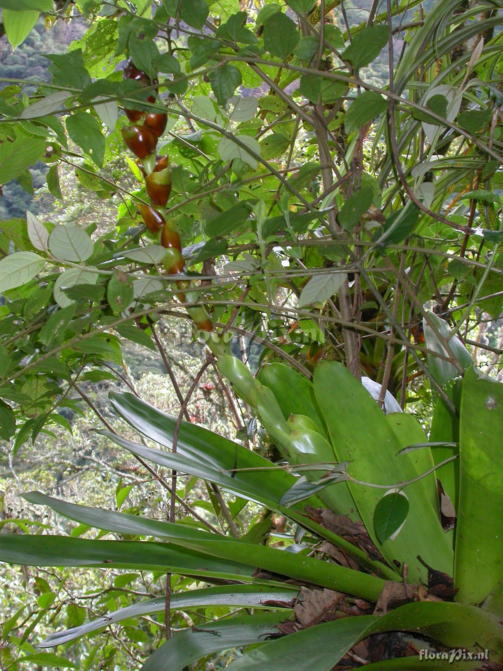 8974 - Bromeliads (Wild) - 2011-10-13(Dimension: 1734 x 2322 pixels - Counter: 9381) Guzmania xipholepis L.B. Sm. ![]() Locality: Ecuador - Prov. of Zamora-Chinchipe, area of Estación Cientifica San Francisco (S 03°58“, W 79°04“ ), road Loja-Zamora, ca. 35 km from Loja; moist montane forest Photographer: Florian Werner Note: Col.: Werner, F.A. 3058 (20-04-2010) inf. erect, large, with globose bracts subduing every parial infl. Leaves with very broaf base, tapering off ver gradually (but tip rounded).