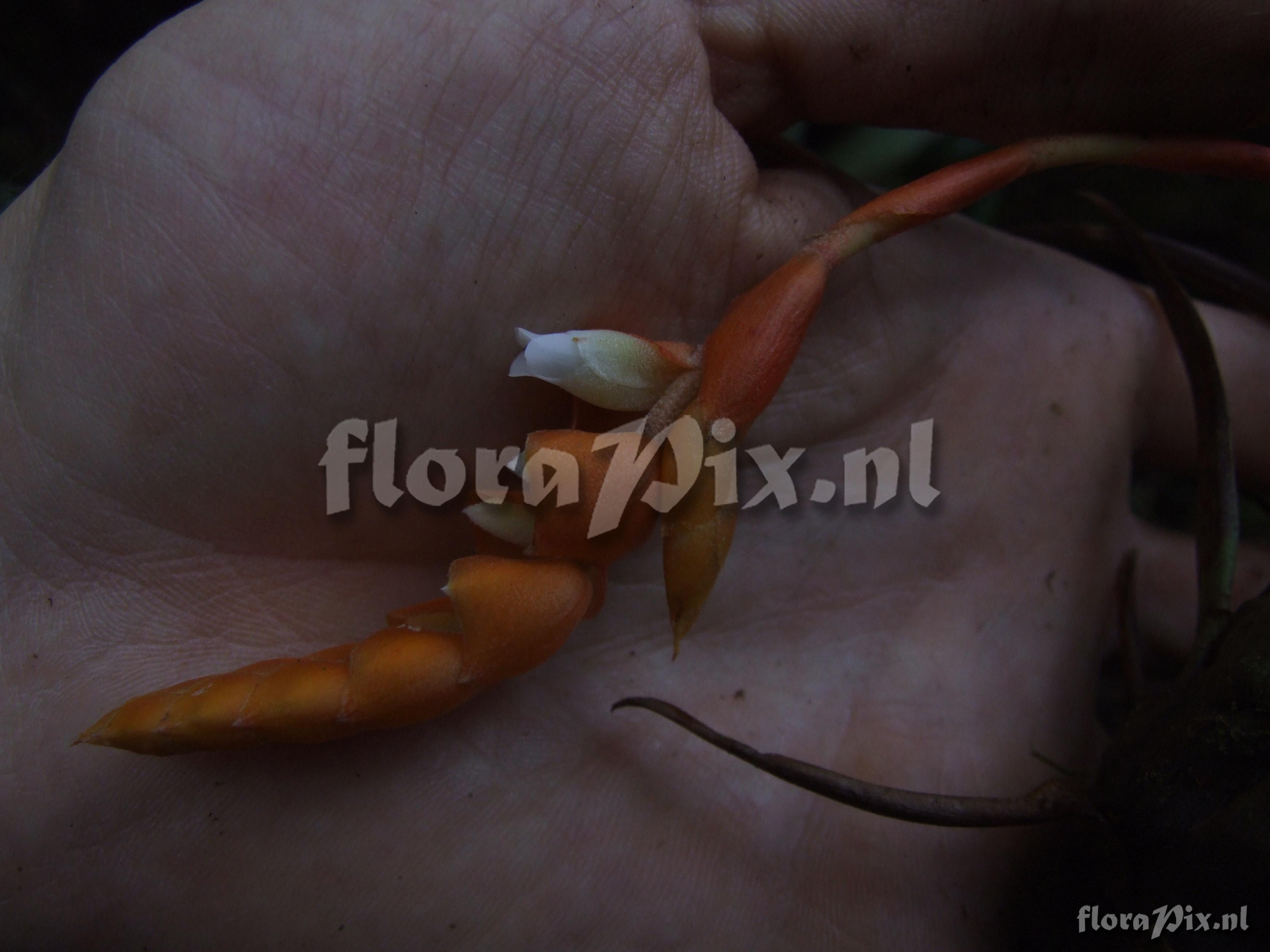 7768 - Bromeliads (Wild) - 2011-10-13(Dimension: 3518 x 2666 pixels - Counter: 8079) Racinaea cf. seemannii ![]() Locality: Ecuador - Province of Loja, Parque Nacional Podocarpus, Cajanuma Photographer: Florian Werner Note: Col.: Werner, F.A. 2020 (08-06-2006) bracts orange, flowers white. Infl. semi-pendant.