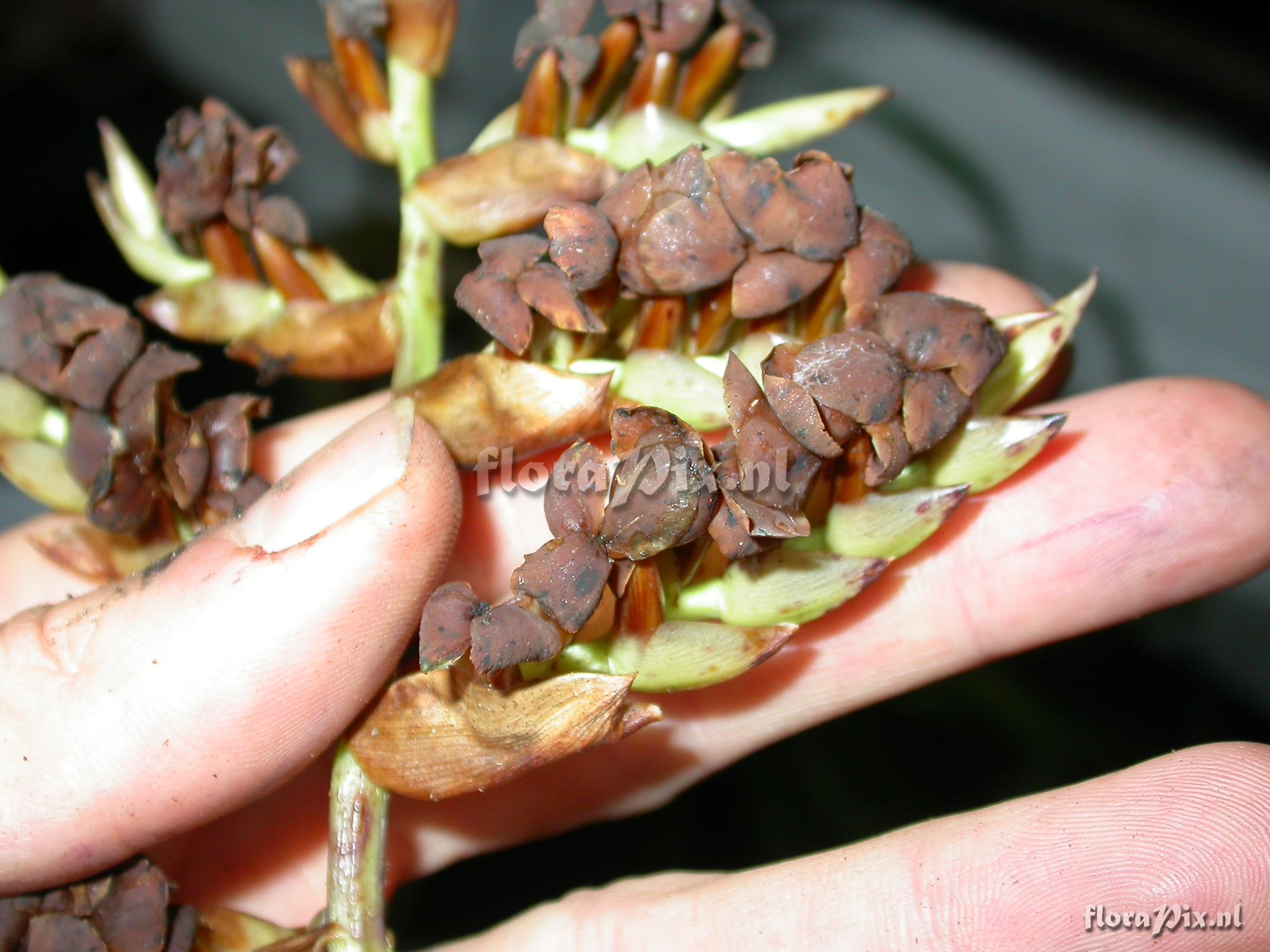 8020 - Bromeliads (Wild) - 2011-10-13(Dimension: 2302 x 1754 pixels - Counter: 6704) Racinaea riocreuxii (André) M.A. Spencer & L. B. Sm. ![]() Locality: Ecuador - Zamora-Chinchipe Province; few km east of Pass (""El Tiro"") between Loja and Zamora; moist lower slope forest Photographer: Florian Werner Note: Col.: Werner, F.A. 2137 (09-12-2006) - Det.: W. Till (U Vienna) 2011 "3m above ground; infl. consp. plain (2-rowed), petals form nive plate above narrow, well-defined tube. "
