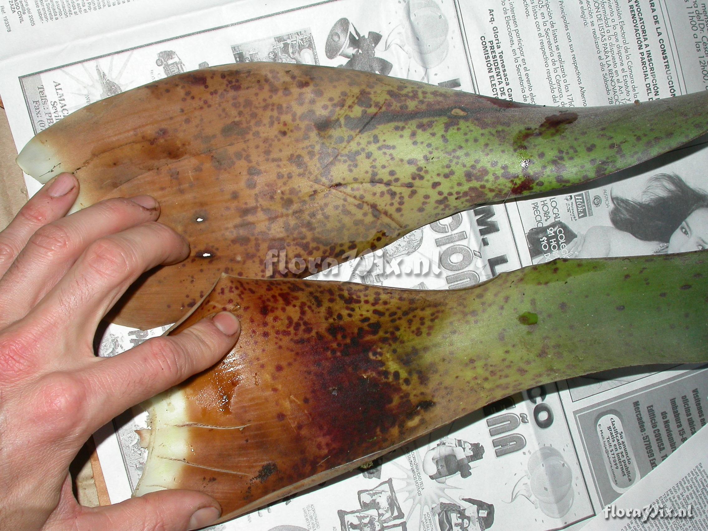 8638 - Bromeliads (Wild) - 2011-10-13(Dimension: 2302 x 1754 pixels - Counter: 6479) Racinaea tenuispica or spiculosa (Luther-vs-Till) ![]() Locality: Ecuador - Arco Iris; entrance to Podocarpus NP or road Loja - Zamora; trail towards river; montane moist forest. Photographer: Florian Werner Note: Col.: Werner, F.A. 2236 (06-05-2007) - Det.: H. Luther (SEL) 2008 "leaves resembling R. monticola in coloration but tank lower, more open, of fewer and longer leaves (with massive (thick) base; infl. semi-pendant, ca. 1m long; rare species. Luther: R. tenuispica (Andre) M.A.Spencer & L.B.Sm.; Till (2011): spiculosa var. spiculosa (Griseb.) M.A. Spencer & L.B. Sm."