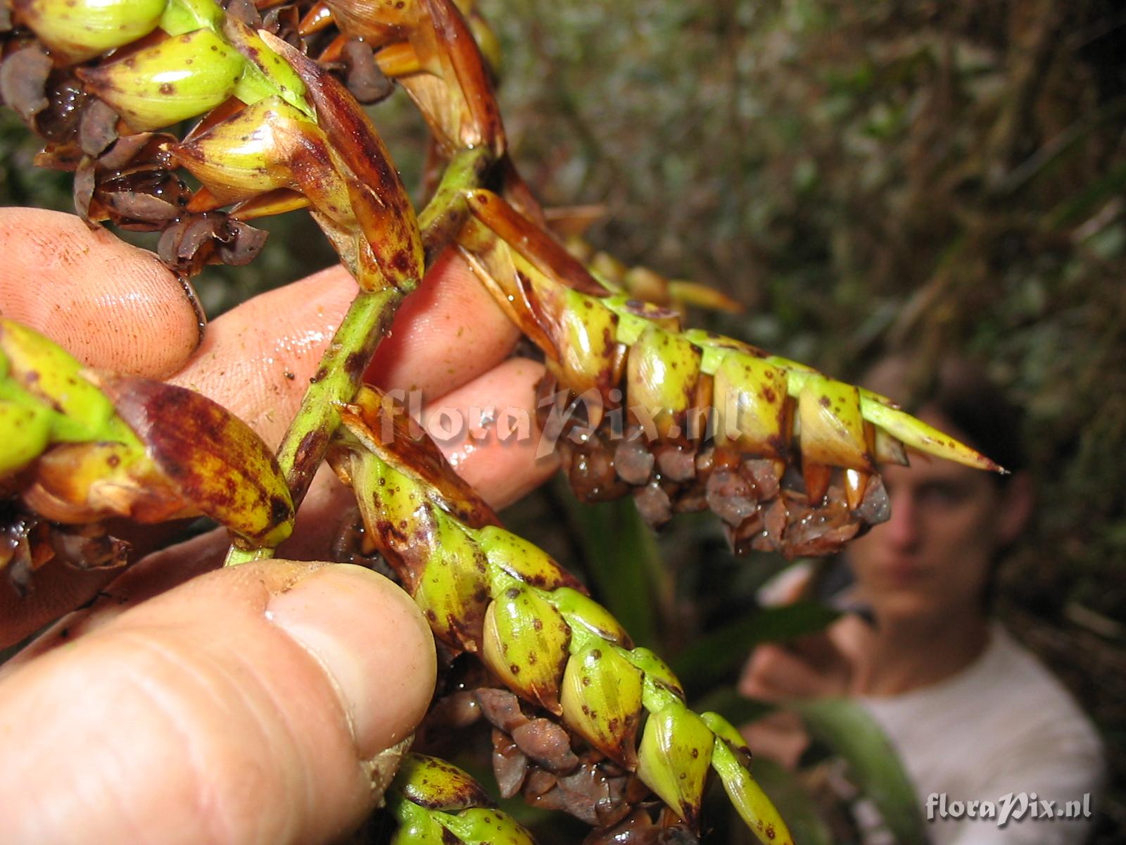 9351 - Bromeliads (Wild) - 2011-10-13(Dimension: 1630 x 1250 pixels - Counter: 7071) Racinaea riocreuxii (André) M.A. Spencer & L. B. Sm. ![]() Locality: Ecuador - Zamora-Chinchipe Province; few km east of Pass (""El Tiro"") between Loja and Zamora; moist lower slope forest Photographer: Florian Werner Note: Col.: Werner, F.A. 2137 (09-12-2006) - Det.: W. Till (U Vienna) 2011 "3m above ground; infl. consp. plain (2-rowed), petals form nive plate above narrow, well-defined tube. "