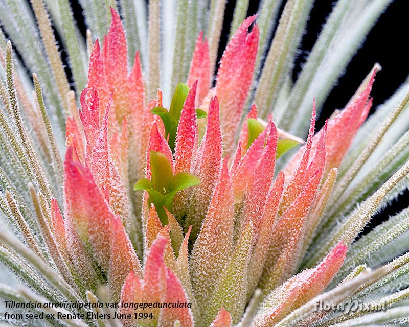 17624 - Bromeliads (Garden) - 20220625(Dimension: 830 x 690 pixels - Counter: 10117) Tillandsia atroviridipetala var. longepedunculata ![]() Locality: New Zealand - Jalisco - Mazamitla at 2,000m. Photographer: Andrew Flower Note: Grown from seed ex Renate Ehlers labelled "intermediate between T. atriviridipetala and T. plumosa (scape 1-2cm. long) EM941402". Seed sown 1994 and seed parent subsequently published 2009 as Tillandsia atroviridipetala var. longepedunculata var. nov., paratype K & R Ehlers EM941402.. (Sent: species@bsi.org)