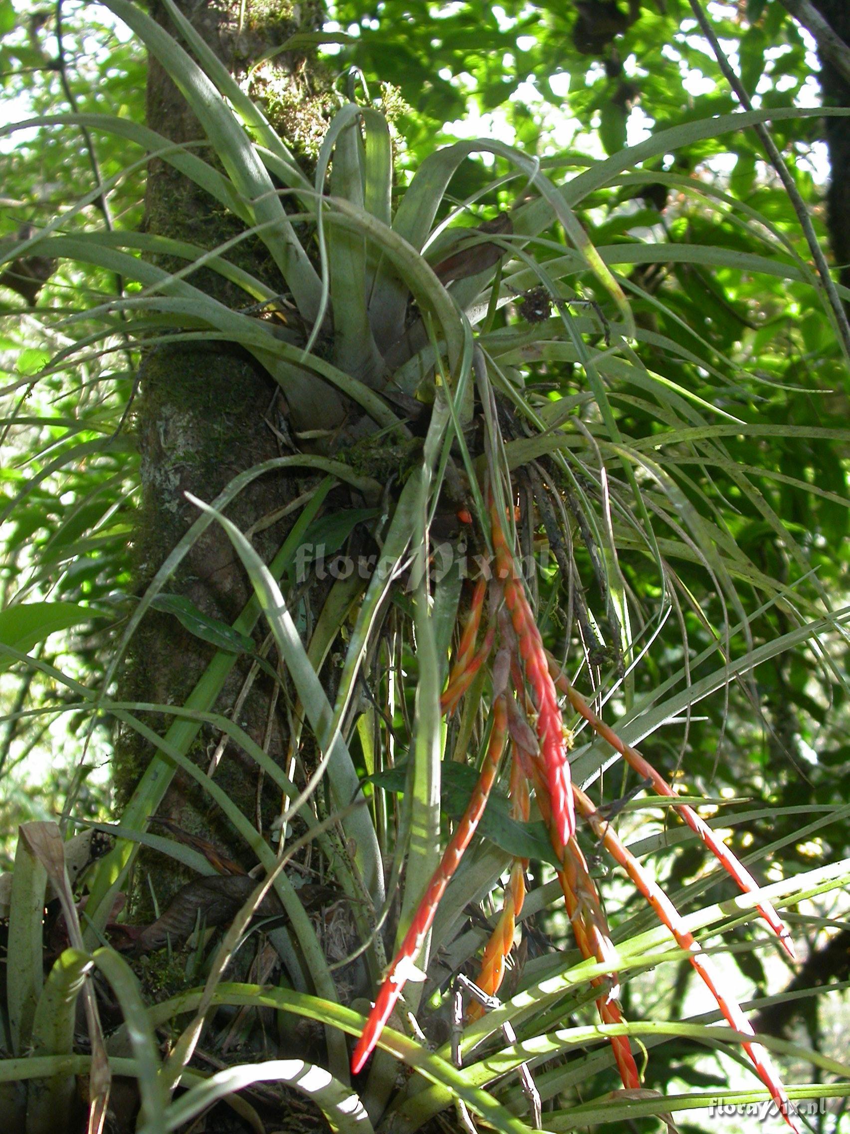 8597 - Bromeliads (Wild) - 2011-10-13(Dimension: 1734 x 2322 pixels - Counter: 10392) Tillandsia barthlottii Rauh ![]() Locality: Ecuador - Prov. of Zamora-Chinchipe, area of Estación Cientifica San Francisco (S 03°58´, W 79°04´ ), road Loja-Zamora, ca. 35 km from Loja; moist montane forest Photographer: Florian Werner Note: Col.: Werner, F.A. 2622 (28-09-2008) - Det.: W. Till (U Vienna) 2011 petals wool-white, bracts bright orange. 7 cm long lumbricid worm in leaf axil (present to Doro).
