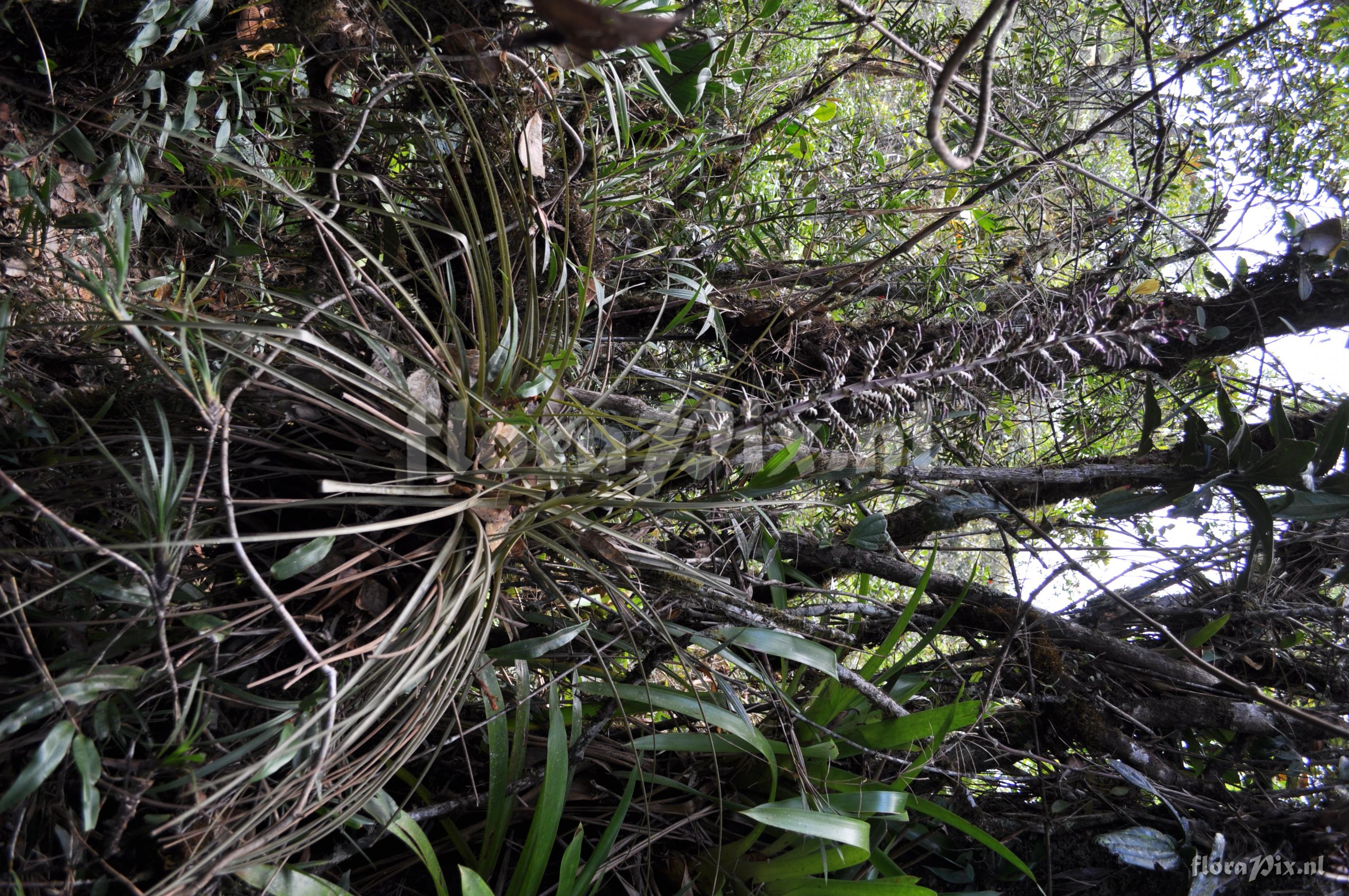 9014 - Bromeliads (Wild) - 2011-10-13(Dimension: 2878 x 4338 pixels - Counter: 10732) Racinaea laminata ![]() (Uploaded as: Tillandsia laminata) Locality: Ecuador - Prov. of Zamora-Chinchipe, area of Estación Cientifica San Francisco (S 03°58´, W 79°04´ ), road Loja-Zamora, ca. 35 km from Loja; moist montane forest Photographer: Florian Werner Note: (as Werner, F.A. 3112 ) "inf. semipendent, bracts magenta, corolla dark lila; plant growing terrestrially but usual an epiphyte, more common at 2200-2300 m, but also in ridge situations." Identification: Solved